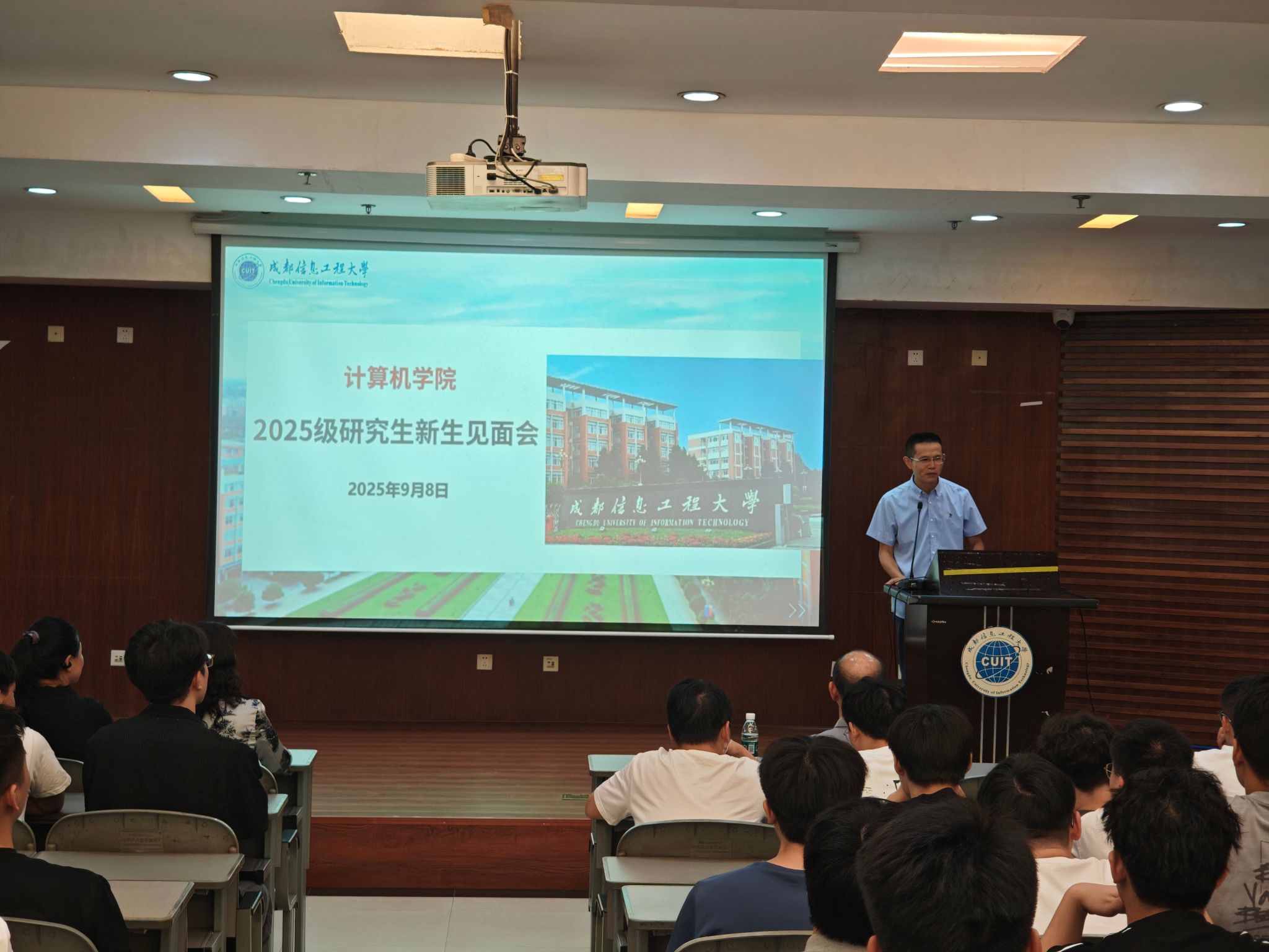 9月8日下午,beat365中文官方网站2025级研究生新生见面会在学术报告厅举行。学院党委书记陈敏,副院长吴涛、马健兵,研究生导师王铁军、苏红,研究生辅导员曹佳阳及2025级全体研究生新生参加会议。会议由曹佳阳主持。