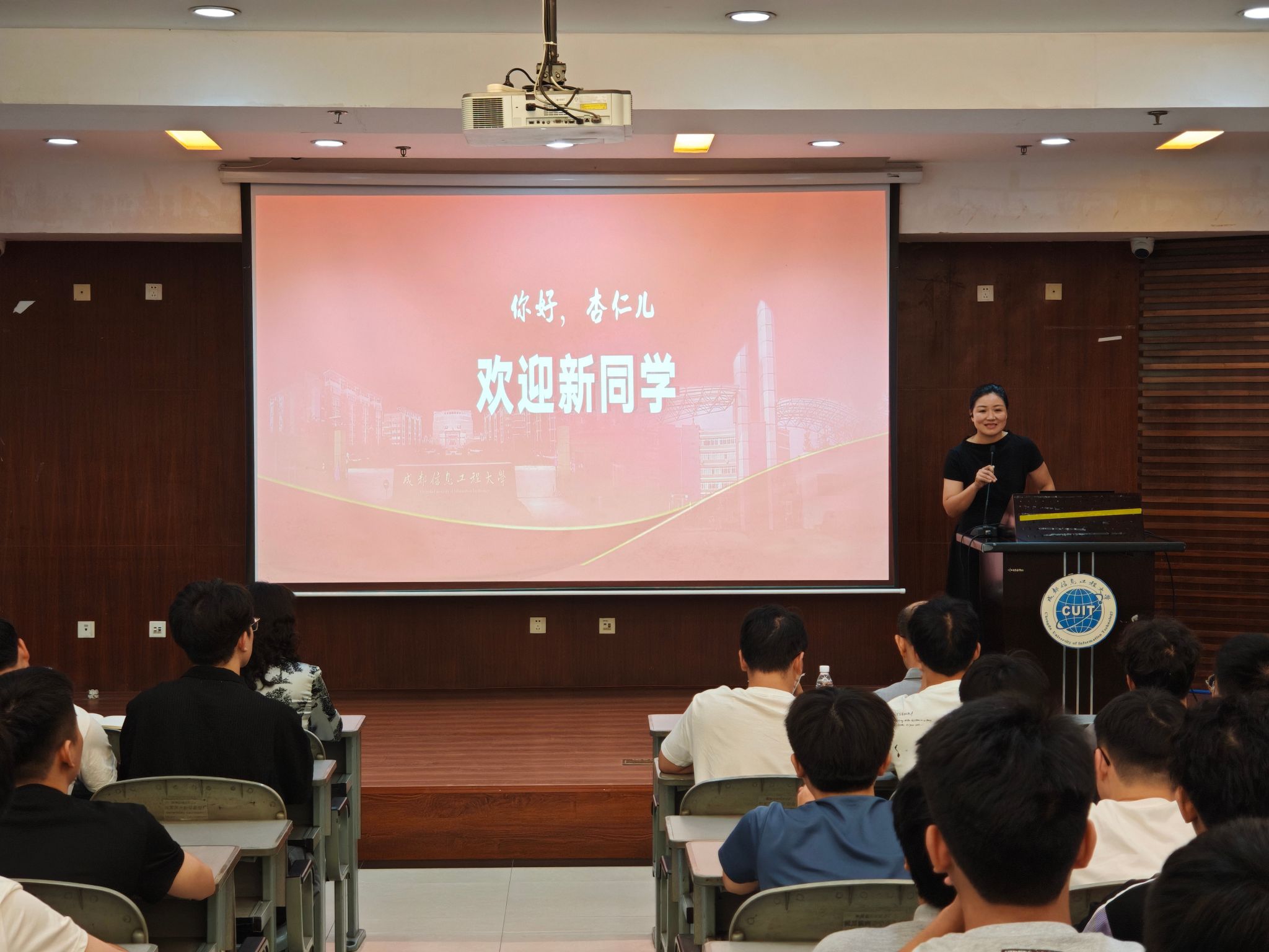 陈敏首先代表学院致欢迎辞,回顾学校发展历程,重点介绍beat365中文官方网站在学科建设、师资队伍与科研成果等方面的显著成绩。她详细阐释学院“产学研用”融合的人才培养特色,并以往届毕业生发展为例,鼓励新生尽早树立明确的学习与发展目标。