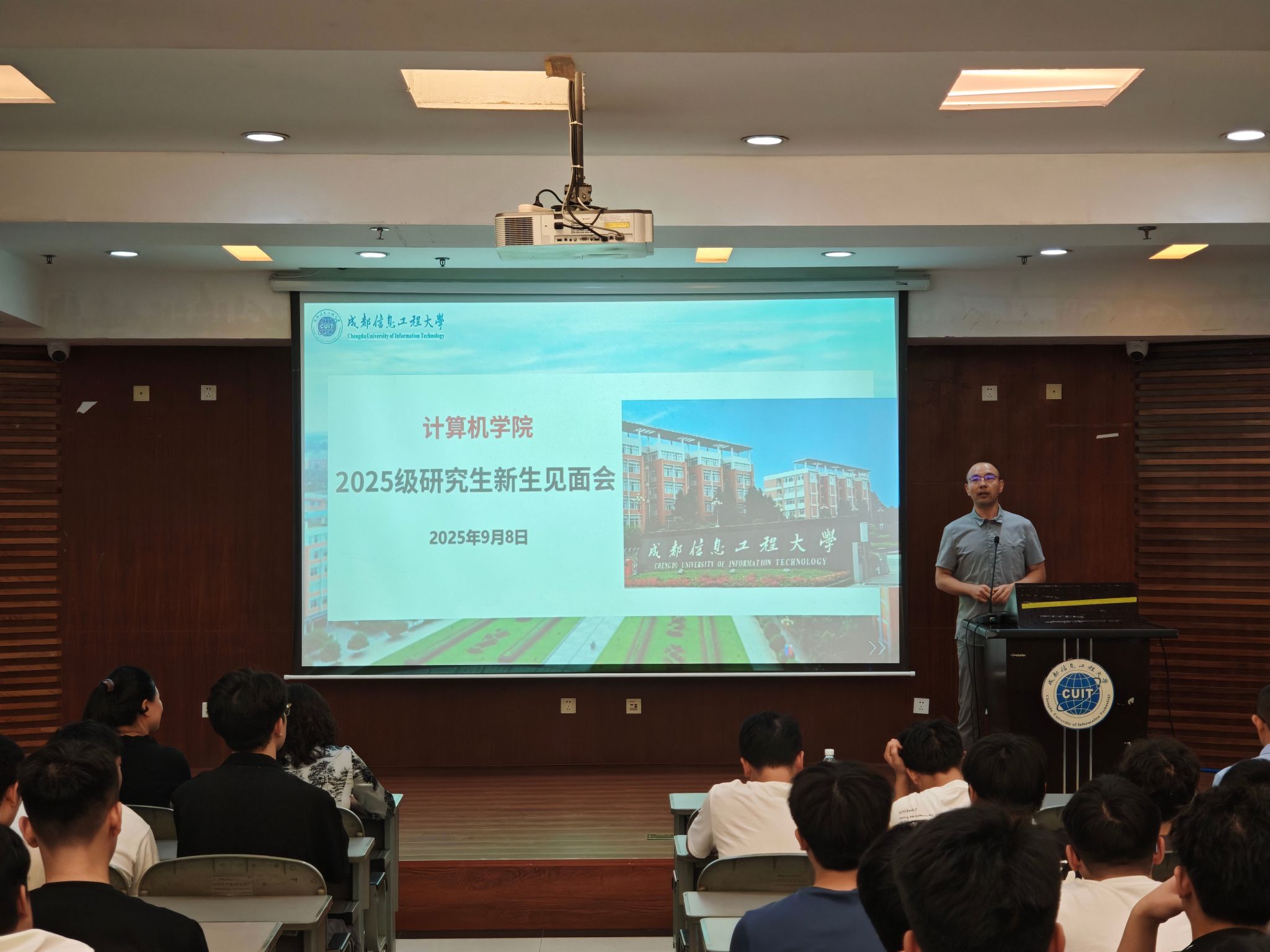 吴涛就研究生阶段的学习特点提出要求,强调应注重批判性思维与独立科研能力的培养,同时提醒同学们关注身心健康,合理安排科研与生活,积极参与体育和文艺活动,保持良好状态。