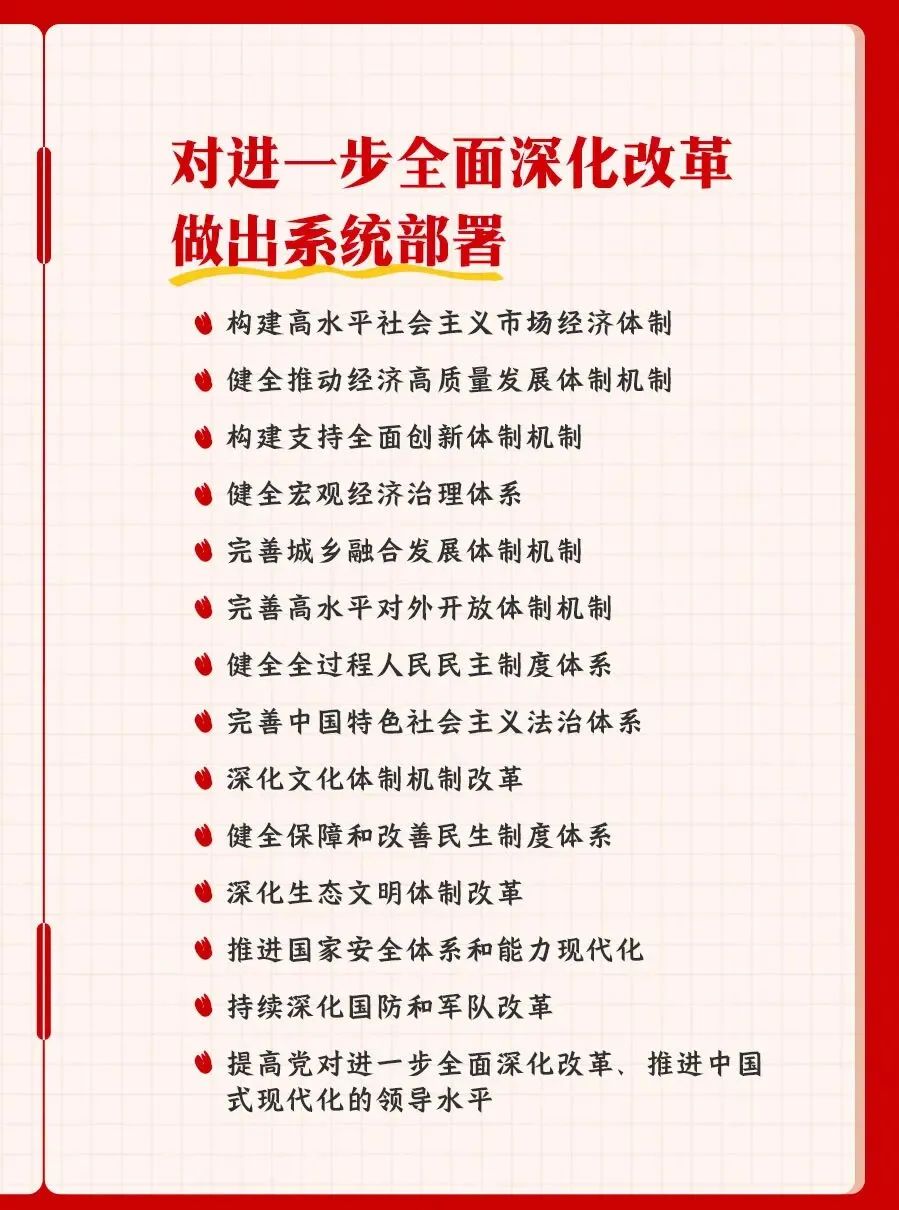 您所在的位置: 首页 >> 党建工作 >> 学习资料 >> 正文 学习资料 党的二十届三中全会精神知识点梳理 党的二十届三中全会是在以中国式现代化,全面推进强国建设、民族复兴伟业的关键时期,举行的一次十分重要的会议。进一步全面深化改革,总目标是什么?要贯彻哪些原则?紧扣中国式现代化,部署了哪些重大举措?一组笔记为你梳理。 上一条:合格党员标准 【关闭】