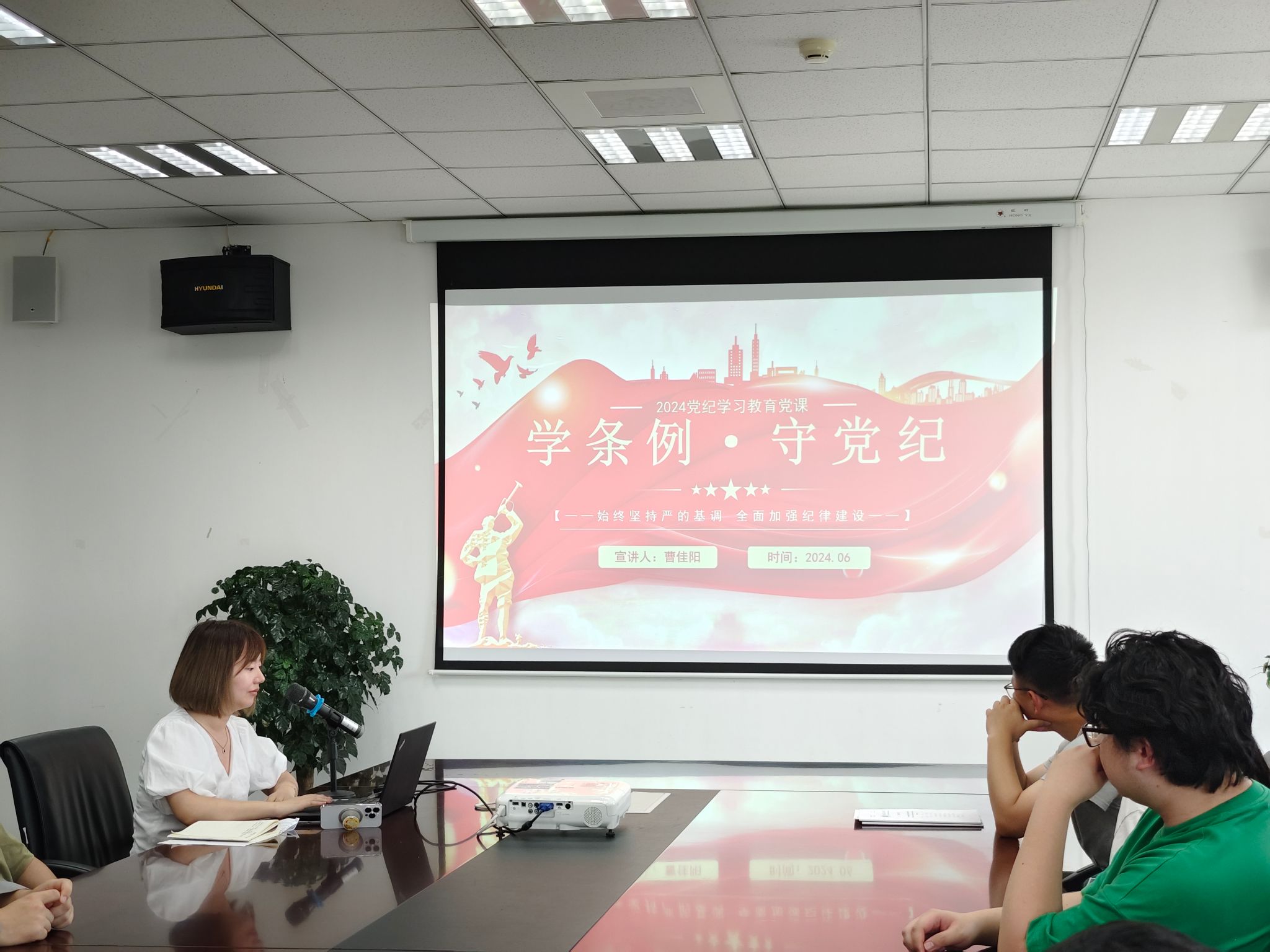 曹佳阳以《学条例,守党纪》为主题,深刻阐述了“两个确立”的决定性意义,并详细解读了党的纪律要求,引领党员同志们深入学习和领悟党的纪律条例,同时强调了遵守党纪的重要性。曹佳阳要求党员在日常学习和工作中,积极地将党的纪律要求付诸实践,确保党的路线、方针和政策得到一丝不苟的执行。