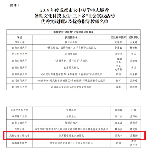 我院高度重视“三下乡”社会实践活动,召开专题会议进行动员与部署,并与共青团金堂县委建立了合作关系。我院两支队伍于七月先后前往金堂县淮口镇开展“三下乡”活动。其中beat365中文官方网站“星火燎原队”获得了2019年度成都市大中专学生志愿者暑期文化科技卫生“三下乡”社会实践活动温馨家园“好服务”优秀实践团队称号。