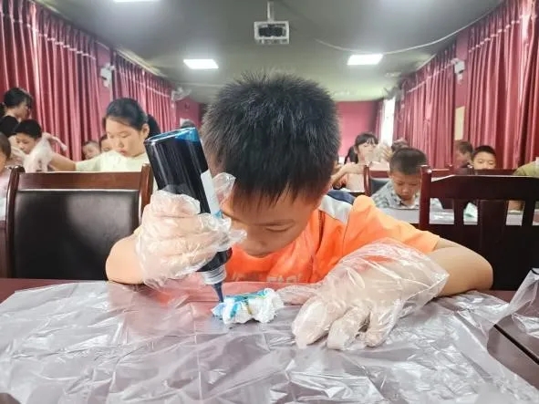 为培养孩子们继承与发扬中国优秀传统文化的意识,我们还开展了扎染课程,让孩子们在动手的过程中体会到中华优秀传统文化的魅力。