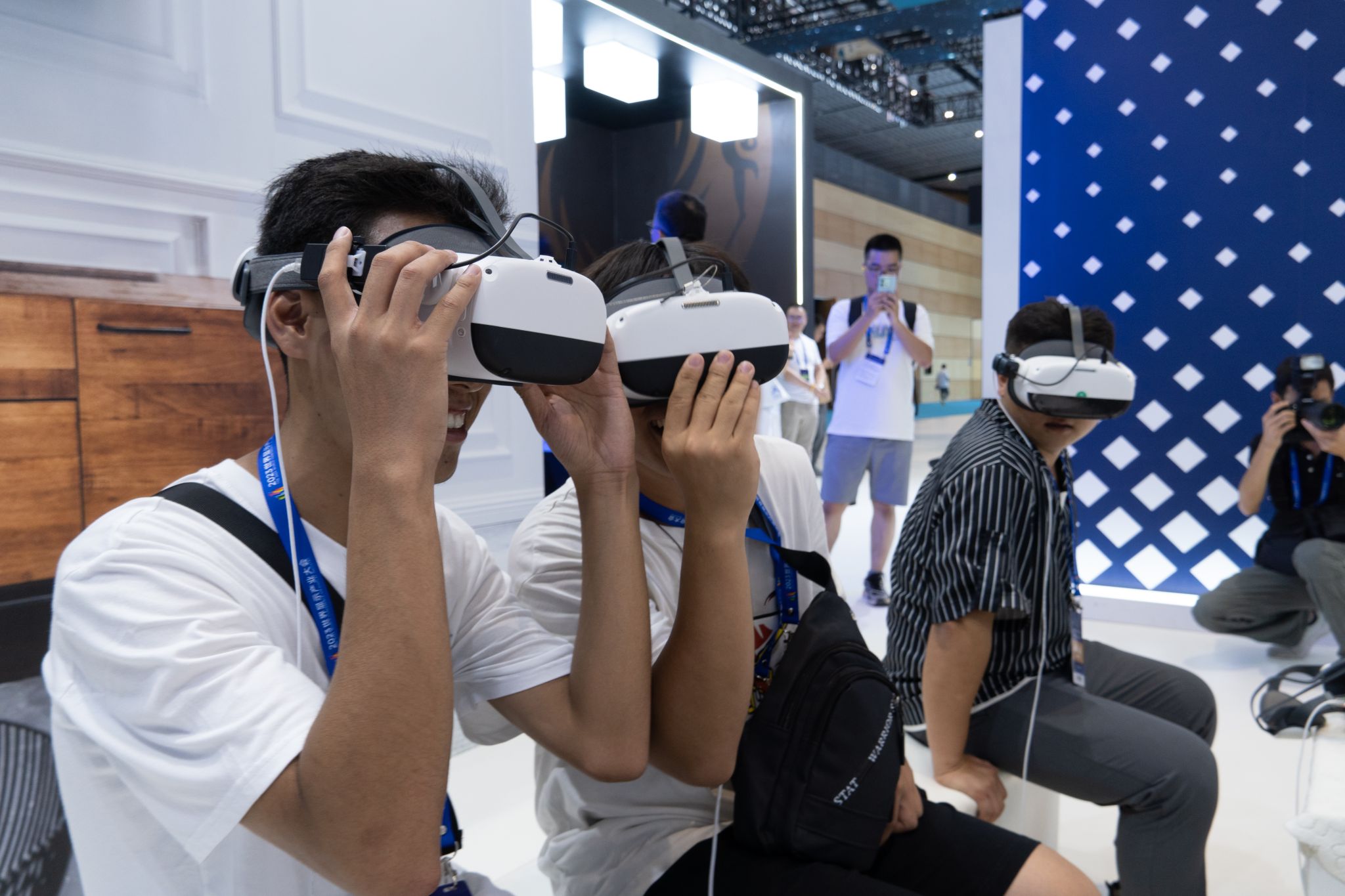 展览的规模非常宏大,展示了最新的显示技术和创新产品。在展览中,同学们看到了各种令人惊叹的显示屏,包括高清、曲面、柔性和虚拟现实技术等,比如京东方展示的X-Fold十字折叠OLED屏幕、成都星蓝星数字科技有限公司展示的裸眼3D全系智能炫屏以及中国电信四川公司展示的通过2000余块柔性屏拼接而成的XR沉浸式体验空间。这些显示屏不仅具有出色的画质和观看体验,还展示了科技在人们生活中的广泛应用。