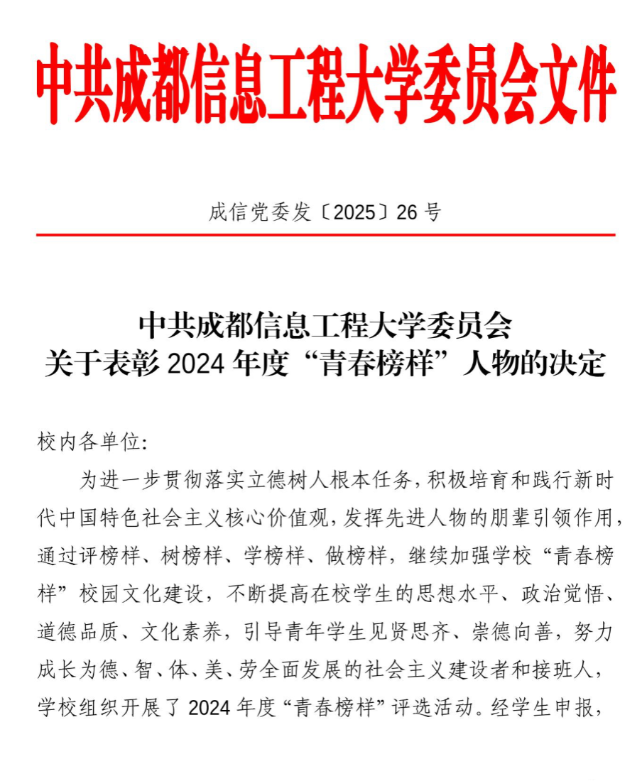 未来,我院将继续以“青春榜样”评选活动为契机,发挥朋辈榜样力量,推动形成积极向上、奋勇争先的良好氛围,助力更多计算机学子在榜样的引领下实现人生目标,为国家和社会的发展贡献青春力量。